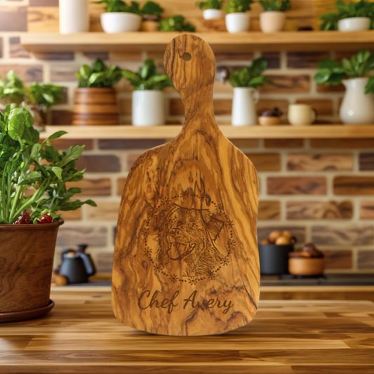 Planche à découper en bois d'olivier avec poignée Forme Irrégulière