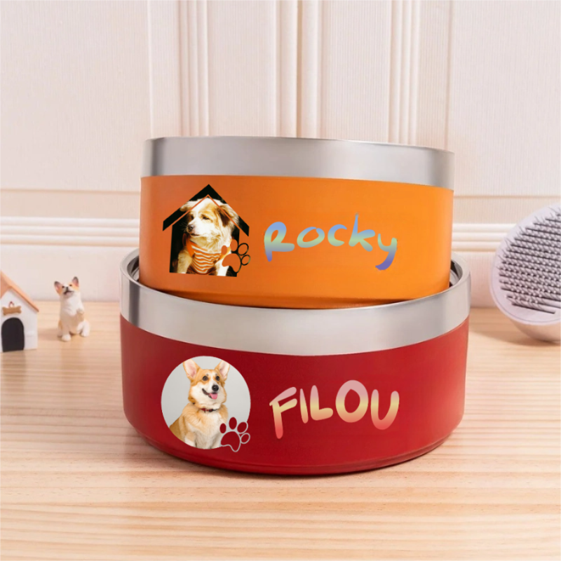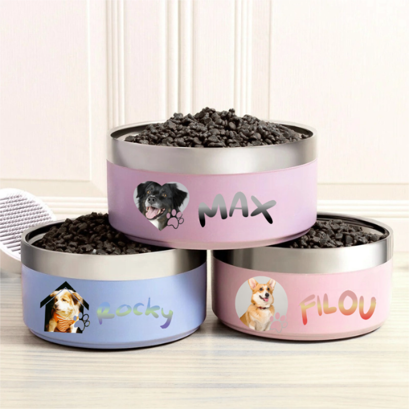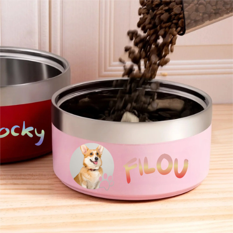 - Ce bol antidérapant en acier inoxydable personnalisé de qualité alimentaire est à la fois pratique et touchant. Il peut être orné de la photo de votre animal et de son prénom, pour un design chaleureux et original.