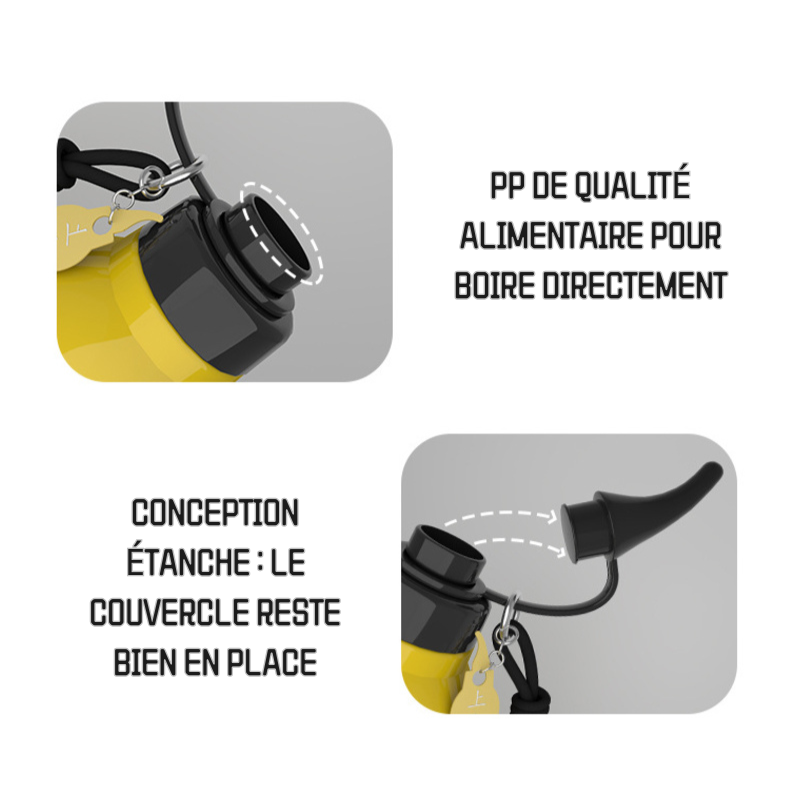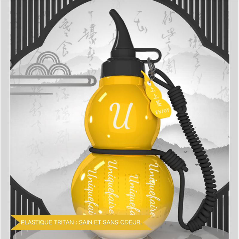 Cette bouteille d'eau est conçue sous la forme d'un gourd, s'inspirant de la symbolique chinoise où le gourd représente le bonheur et la santé. Avec une capacité généreuse de 800 ml, elle répond parfaitement aux besoins hydratants, que ce soit pour les longues journées de travail, d'étude ou de plein air. Le goulot est conçu pour une prise en bouche aisée, et le cordon offre non seulement une portabilité pratique, mais également une bonne tenue dans la main.