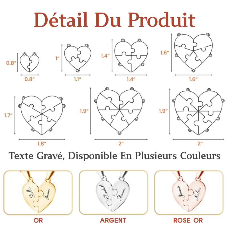 Collier en forme de puzzle cœur personnalisé - Cadeau sur mesure pour meilleurs amis