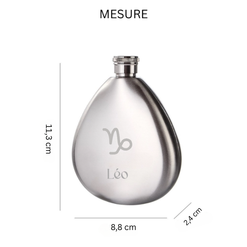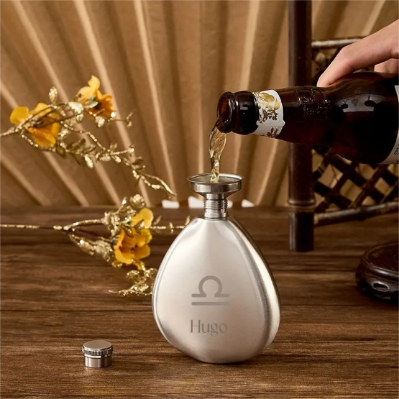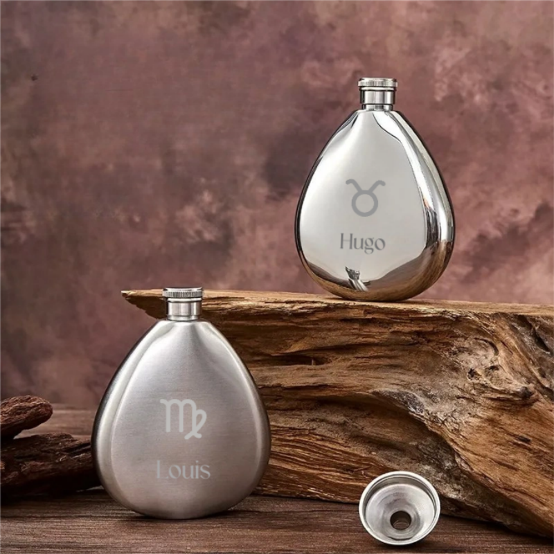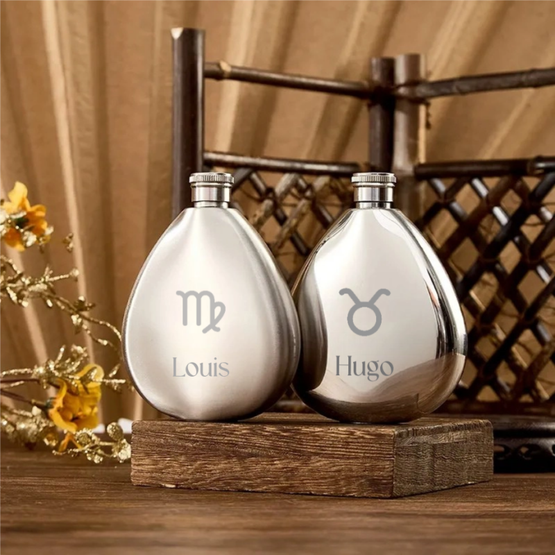 - Personnalisation au laser : Chaque flasque peut être gravée au laser avec un nom et un symbole de signe du zodiaque, pour une touche unique et personnelle.