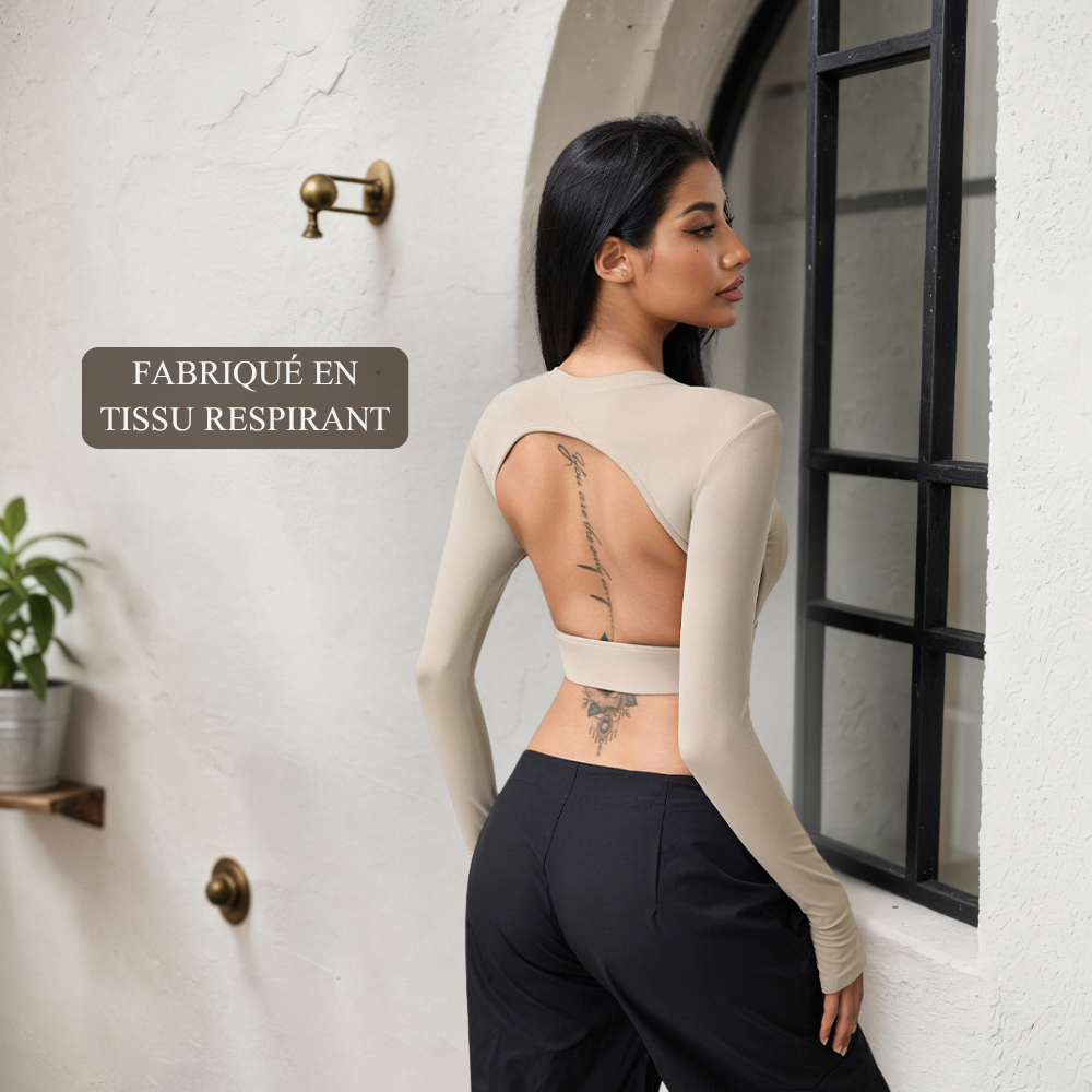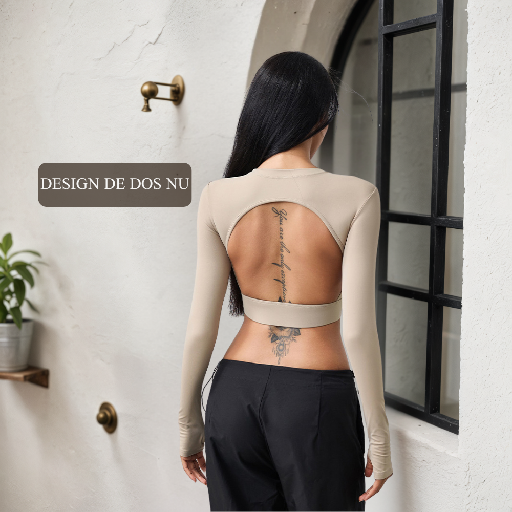 Haut Court à Manches Longues avec Dos Nu pour Sport