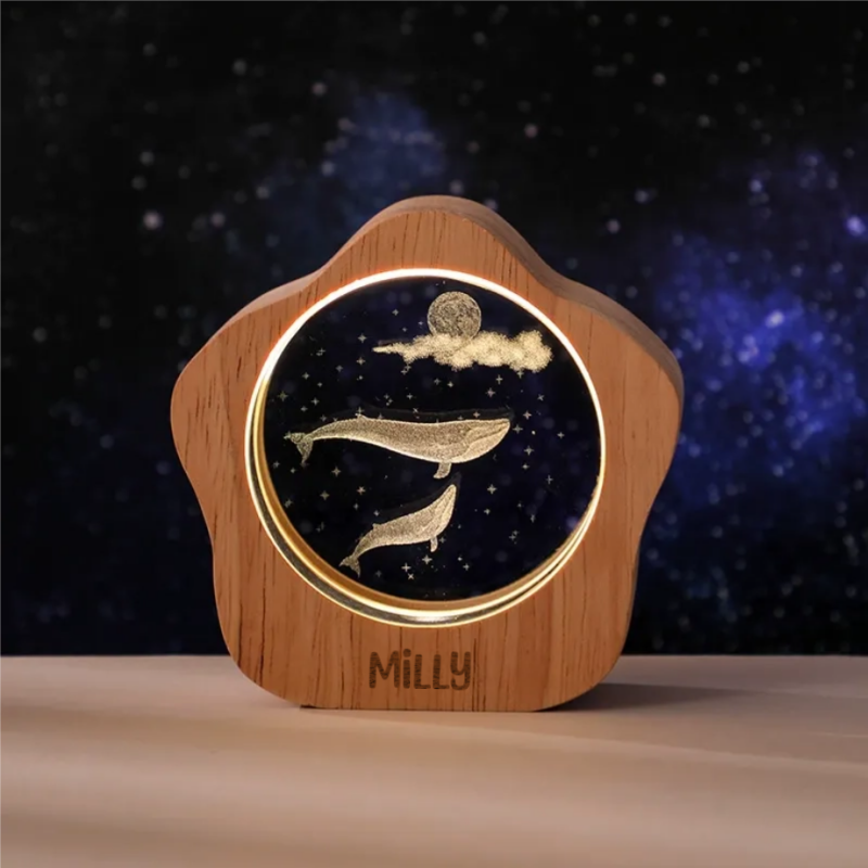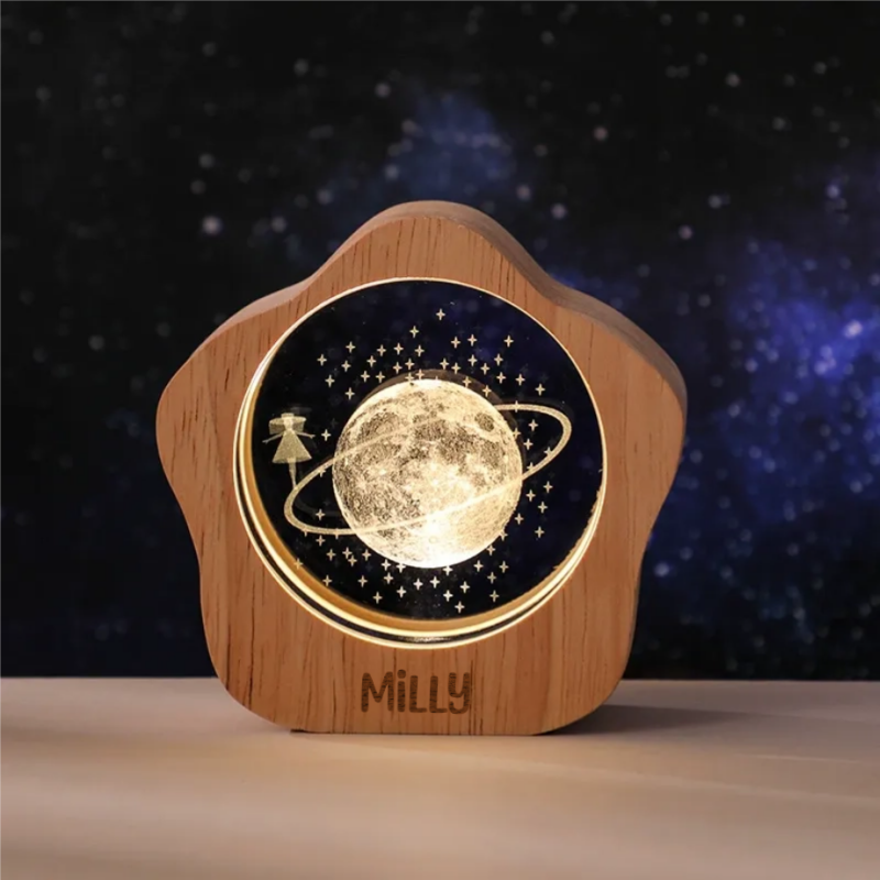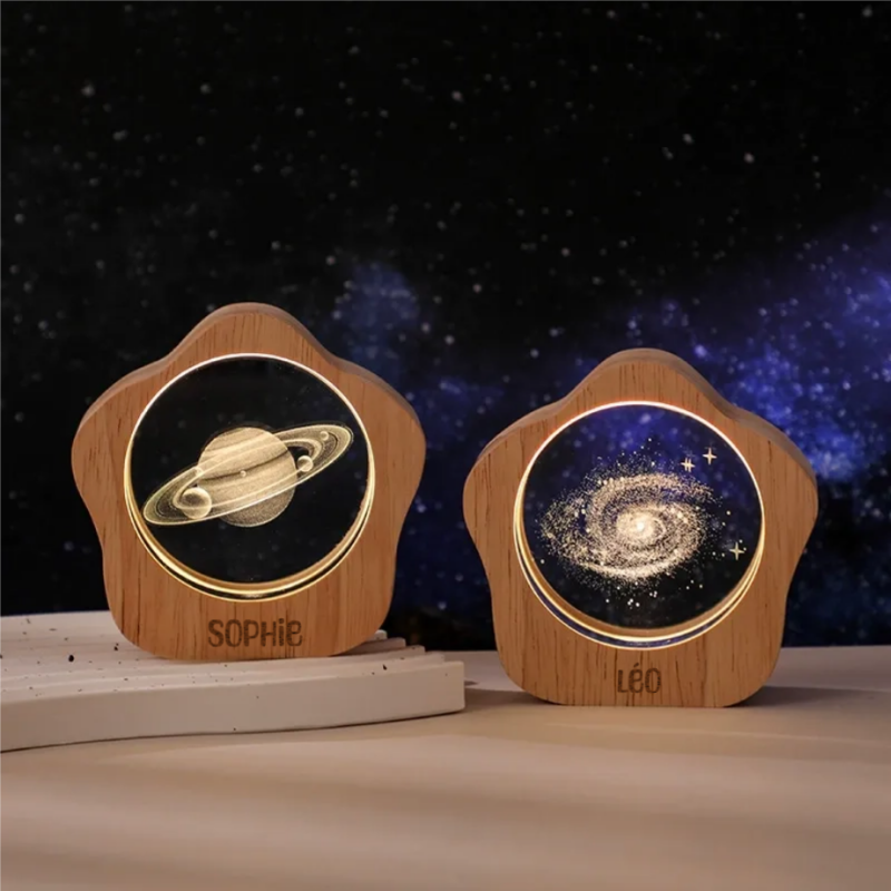 - Idéale comme veilleuse, lampe de chevet ou décoration de bureau, elle crée une ambiance apaisante et romantique. Vous pouvez personnaliser la partie inférieure en bois avec un mot ou un prénom gravé pour en faire un cadeau original et mémorable.