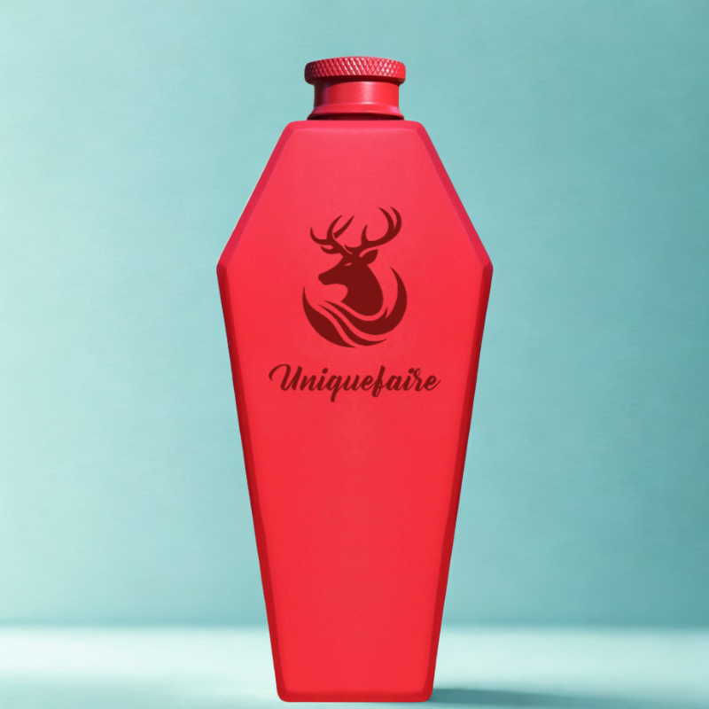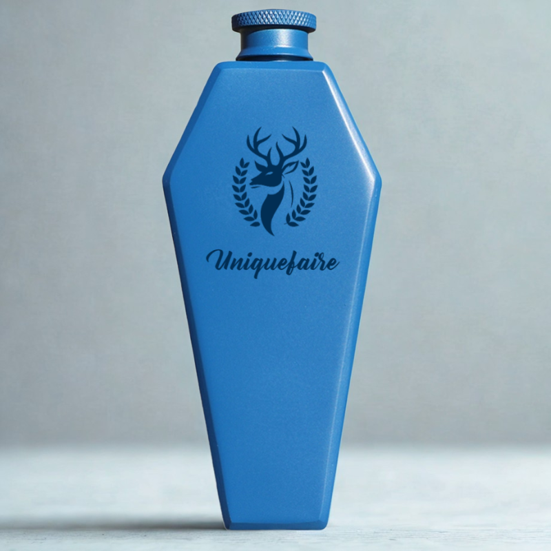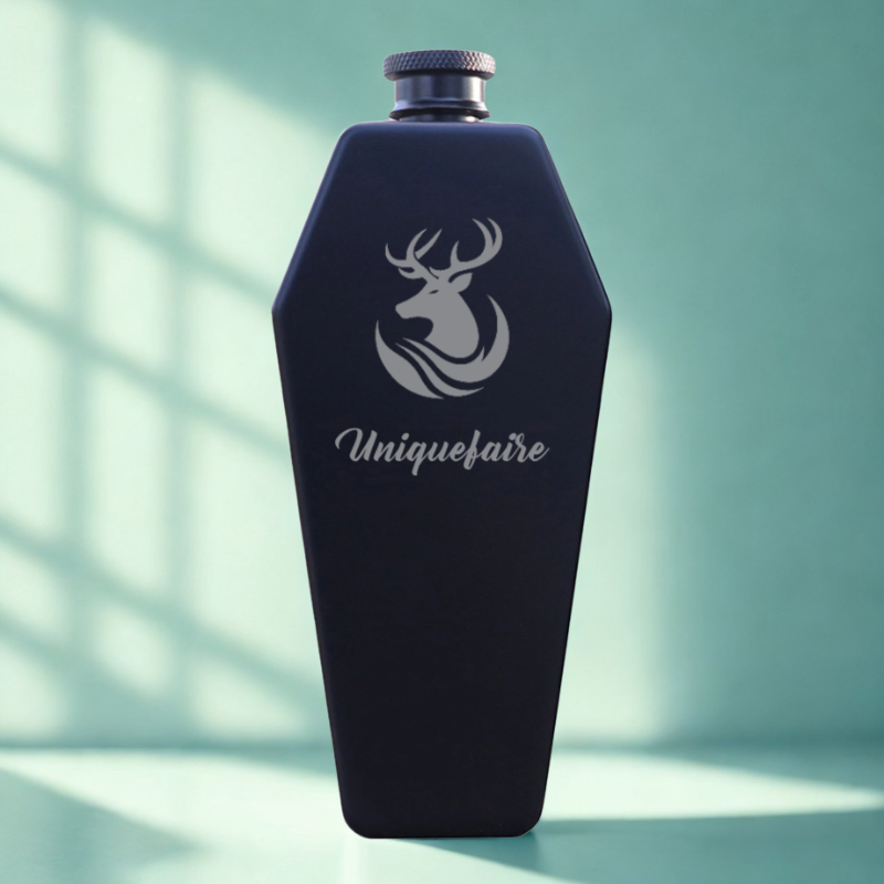Cette flasque présente un design unique en forme d’hexagone irrégulier. Elle est disponible en plusieurs coloris mats, tels que le noir, le bleu, et bien d’autres. Sa silhouette angulaire et minimaliste attire immédiatement le regard. Elle se glisse parfaitement dans une poche ou un petit sac, ce qui la rend idéale pour les déplacements. La gravure personnalisée sur la face avant apporte une dimension supplémentaire, à la fois personnelle et significative.