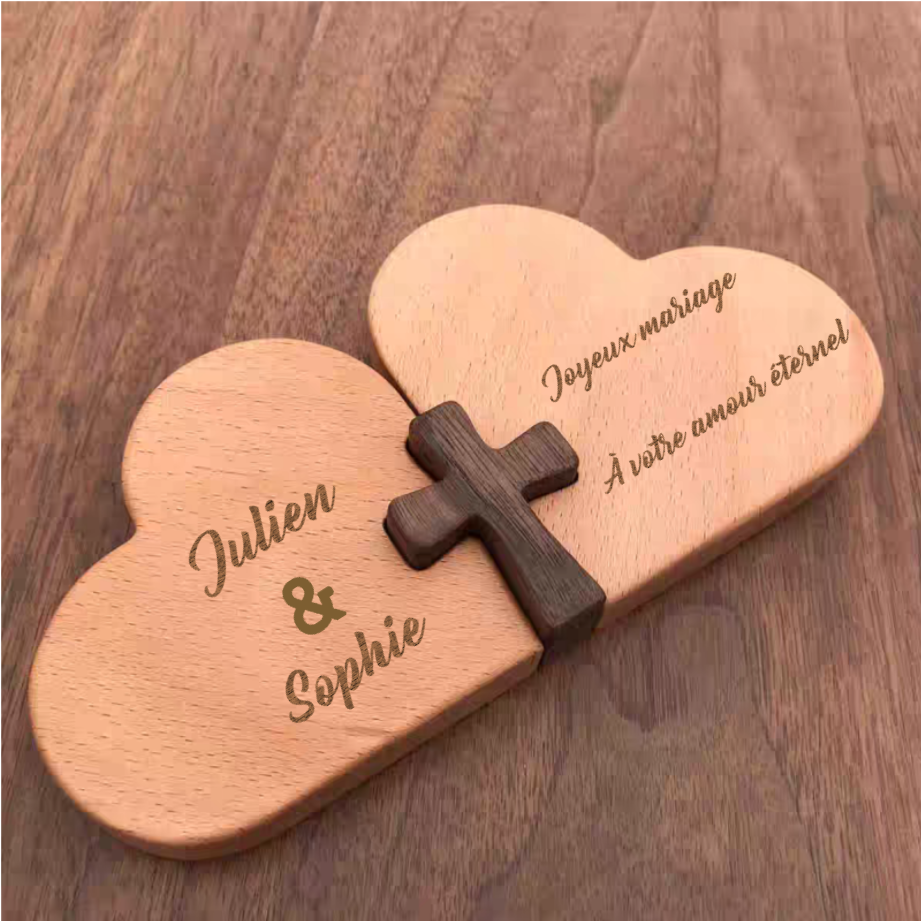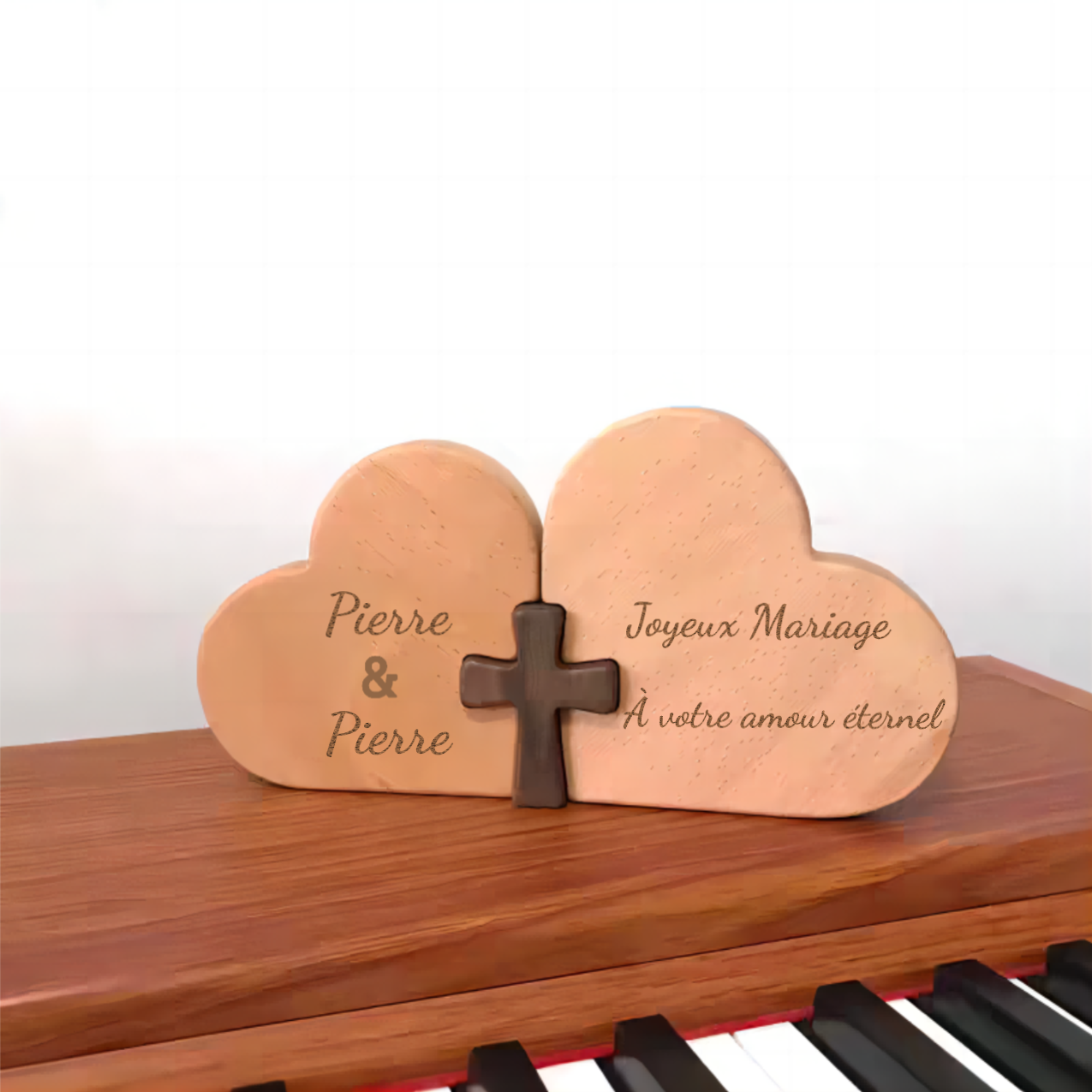 Ornement en Bois de Table Double Cœur Sculpté Cadeau Personnalisé pour Saint-Valentin et Mariages