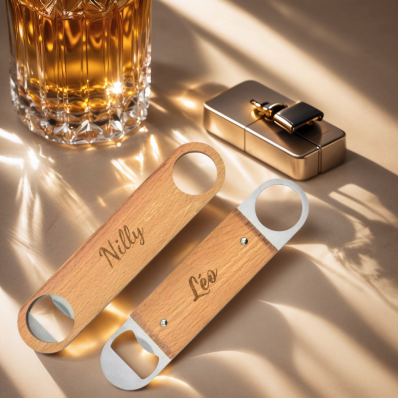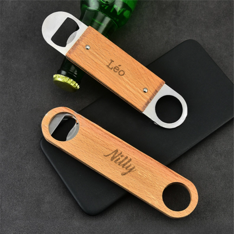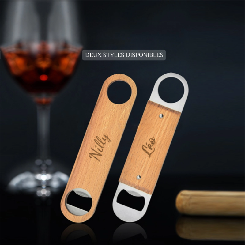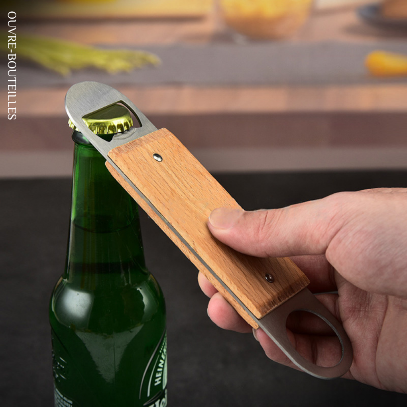 Ouvre-Bouteilles en Acier Inoxydable Manche Plat en Bois