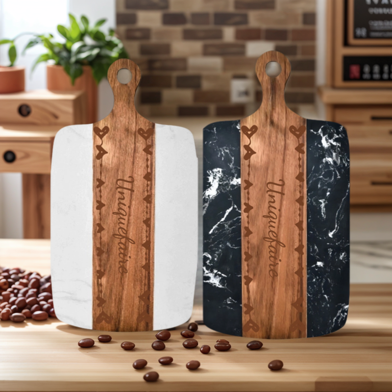 - Design moderne : La combinaison du marbre et du bois d’acacia apporte une touche raffinée à votre cuisine, tout en étant un accessoire fonctionnel.