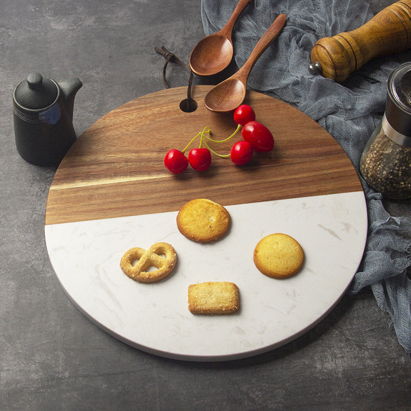Planche à découper ronde en bois et marbre Double face avec trou à accocher