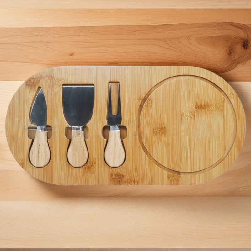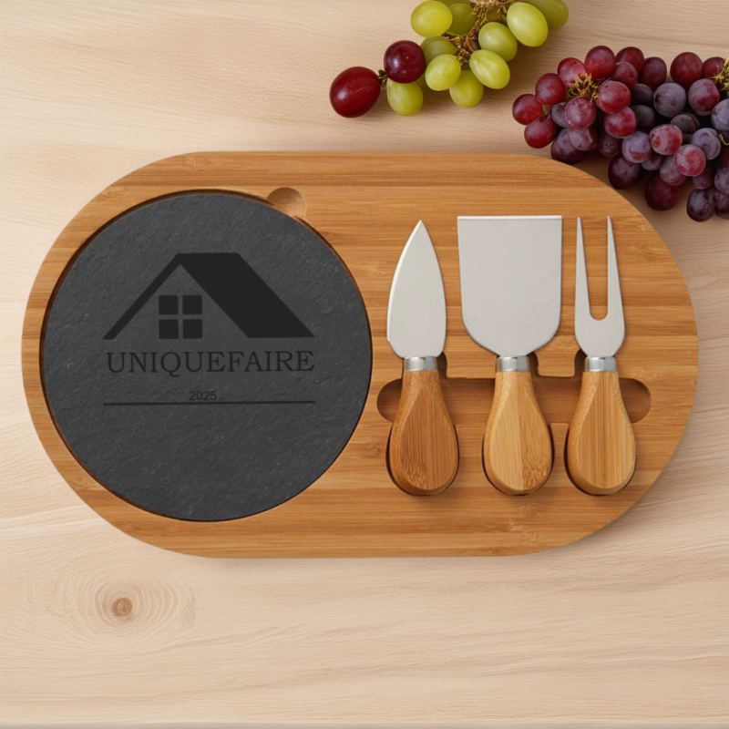 Planche à Fromage en Bambou avec Plateau en Ardoise et Couteaux à Fromage