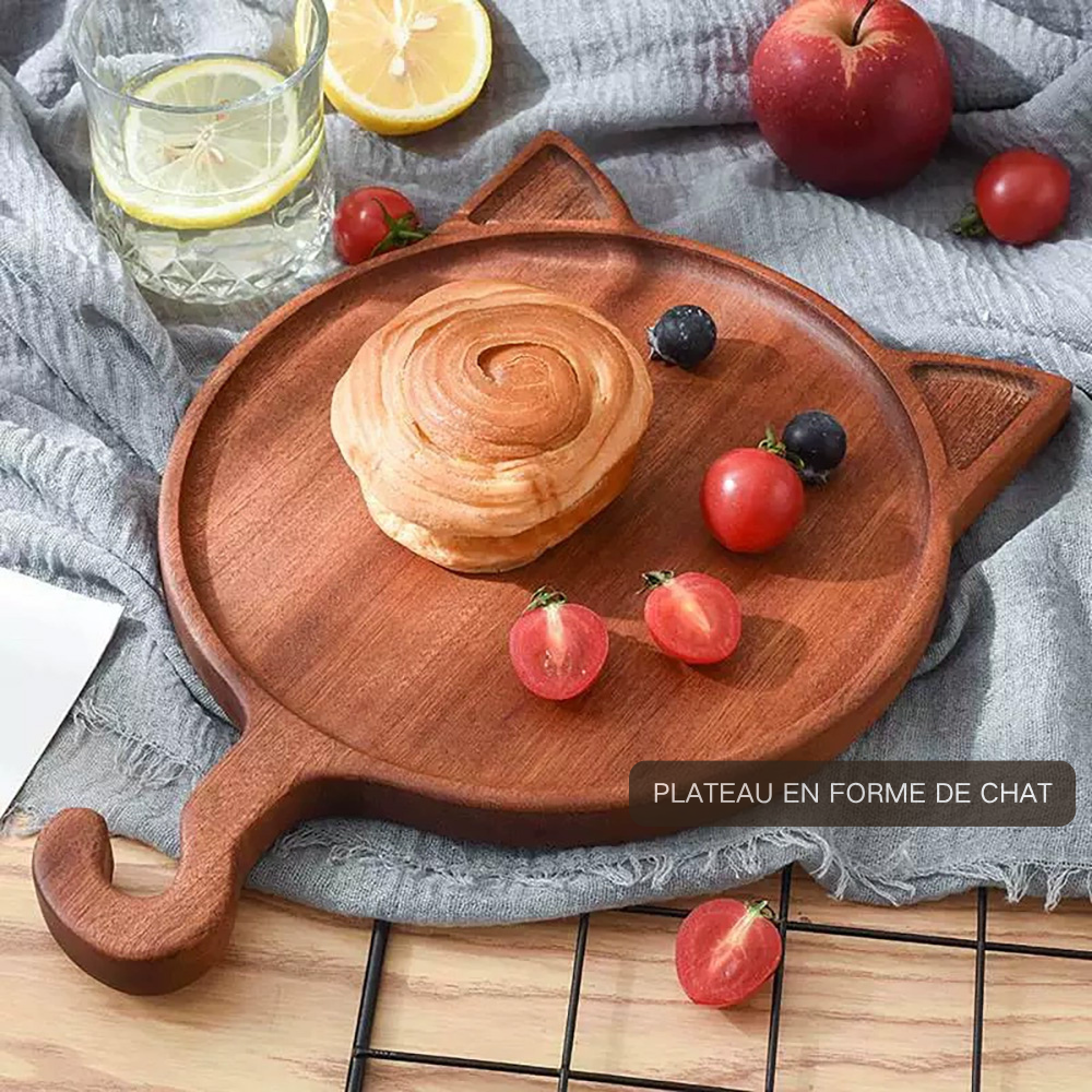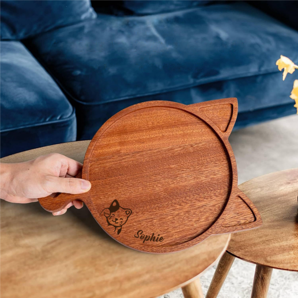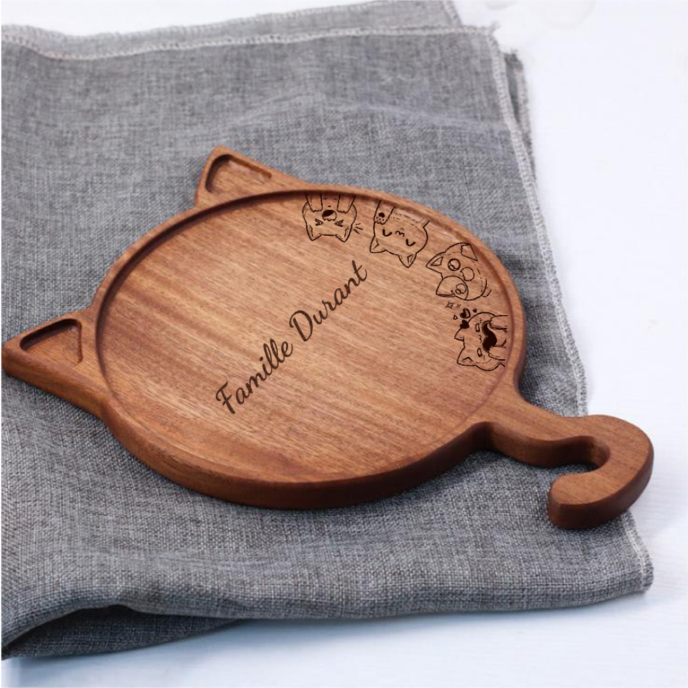 Ce plateau a un design mignon et unique, imitant la forme d'un chat avec des oreilles et une queue. La partie circulaire est parfaite pour servir des pizzas, des pains, des sushis ou même des steaks. Les dessins de chats ajoutent une touche amusante, et la possibilité de personnaliser avec un nom et des motifs de chats en fait un objet spécial pour la famille, des amis ou vous-même.