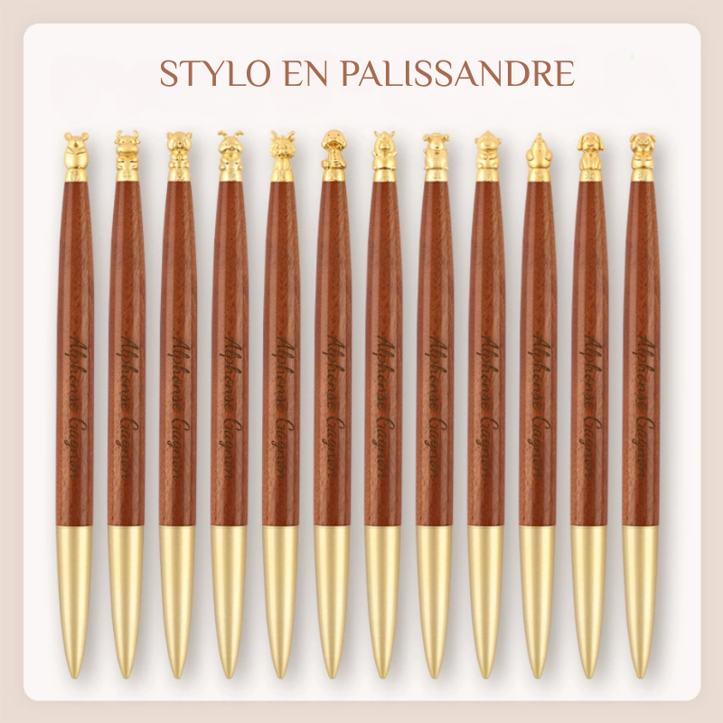 Stylo avec 12 Signes du Zodiaque Chinois Personnalisé Avec Nom Gravé