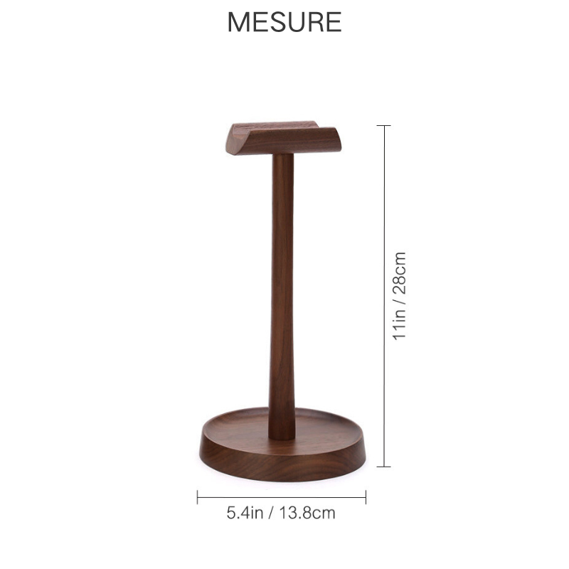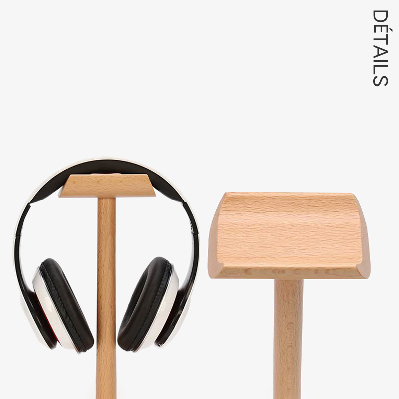 Le support permet de placer efficacement des écouteurs et des casques. La base ronde et stable peut aussi servir à poser de petits accessoires comme une montre, des clés ou un adaptateur. Il est possible de graver un nom ou un message personnalisé sur la base pour un rendu unique.