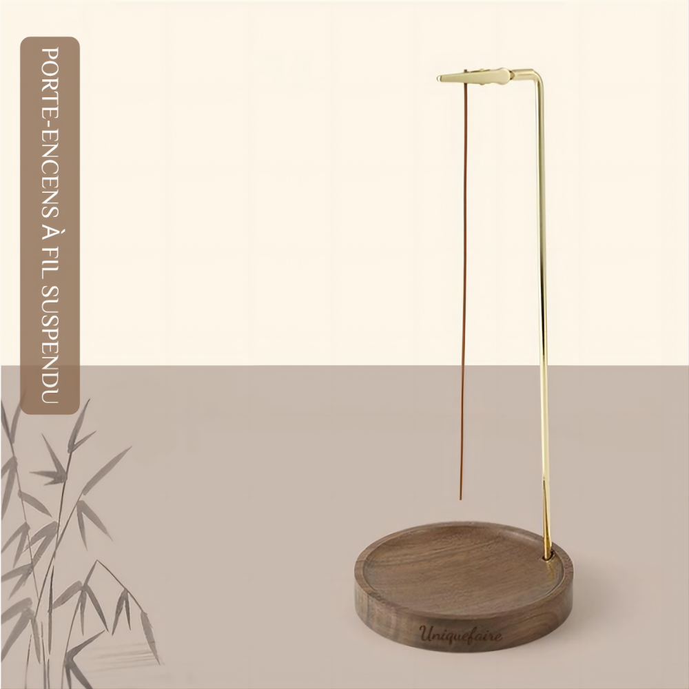 Il offre un support stable pour le bâton d'encens, permettant une combustion contrôlée et une diffusion uniforme de l'odeur. Le design en suspension peut aider à éviter les cendres qui tombent directement sur la surface, facilitant le nettoyage. En outre, il peut être personnalisé par gravure, ajoutant une touche unique.